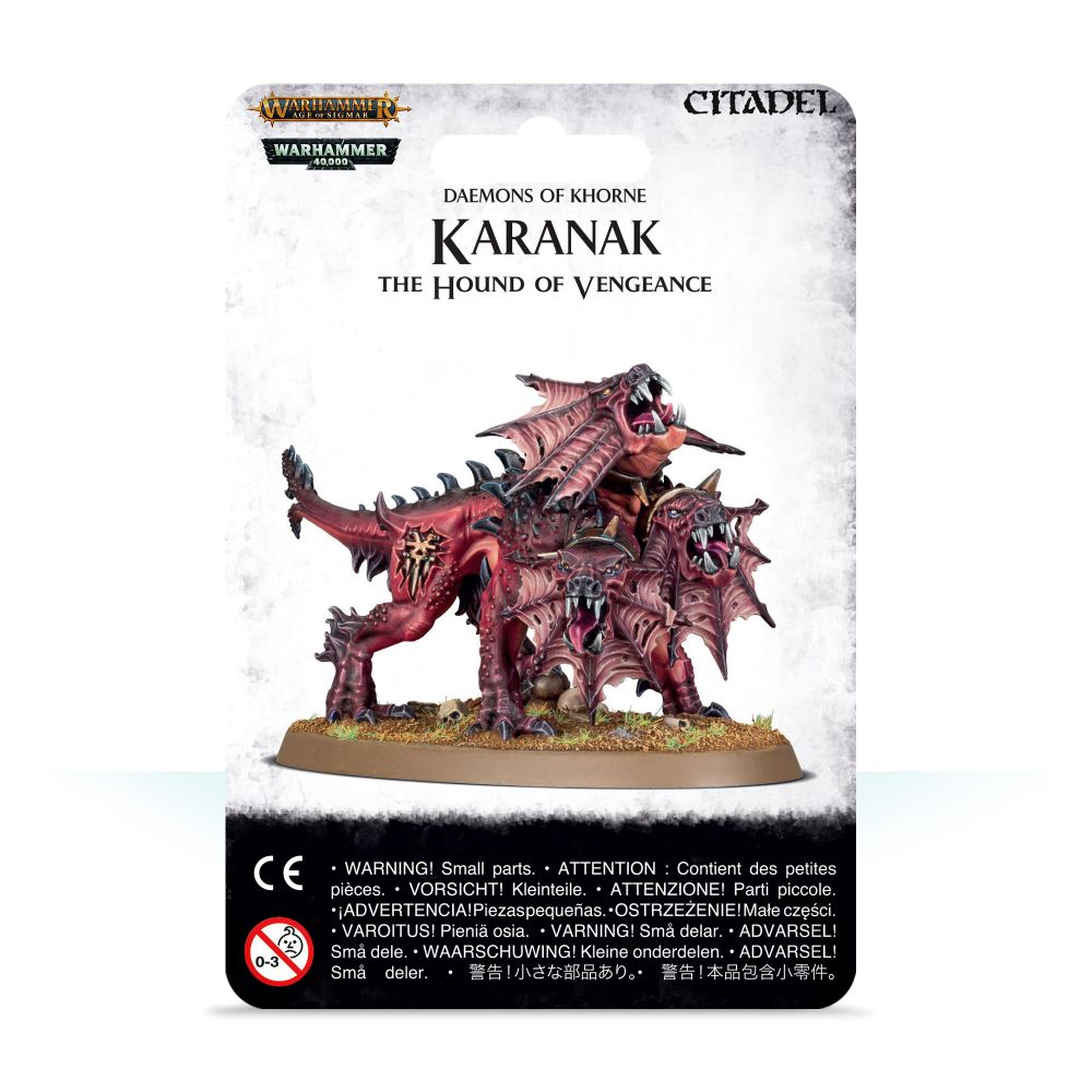 Ever watchful, ever hungry, Karanak is the physical manifestation of the Blood God’s wrathful vengeance. Once he has the scent of his quarry, this tireless predator will not cease in his hunt until he tastes their torn flesh between his fangs.