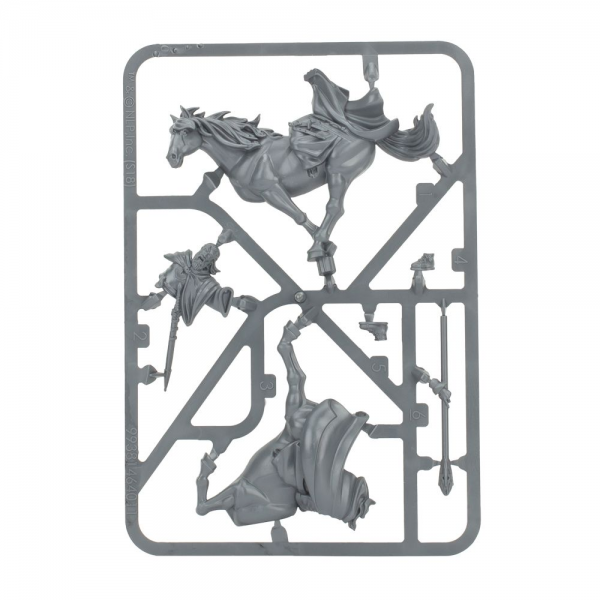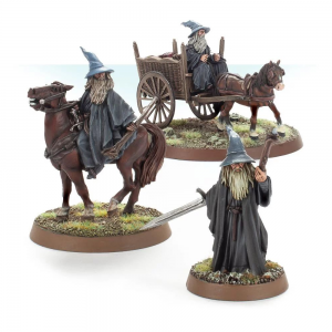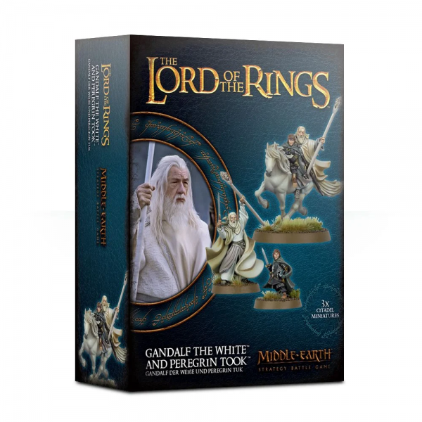 This multipart plastic kit contains the components necessary to assemble Gandalf the White and Peregrin Took, both on foot and mounted on Shadowfax. When mounted, you have the option to remove Peregrin Took, leaving just Gandalf on Shadowfax. On foot, Gandalf wields Glamdring and his wizard’s staff, while Peregrin Took is clothed in the uniform of the Citadel Guard of Minas Tirith with his helmet in his left hand.