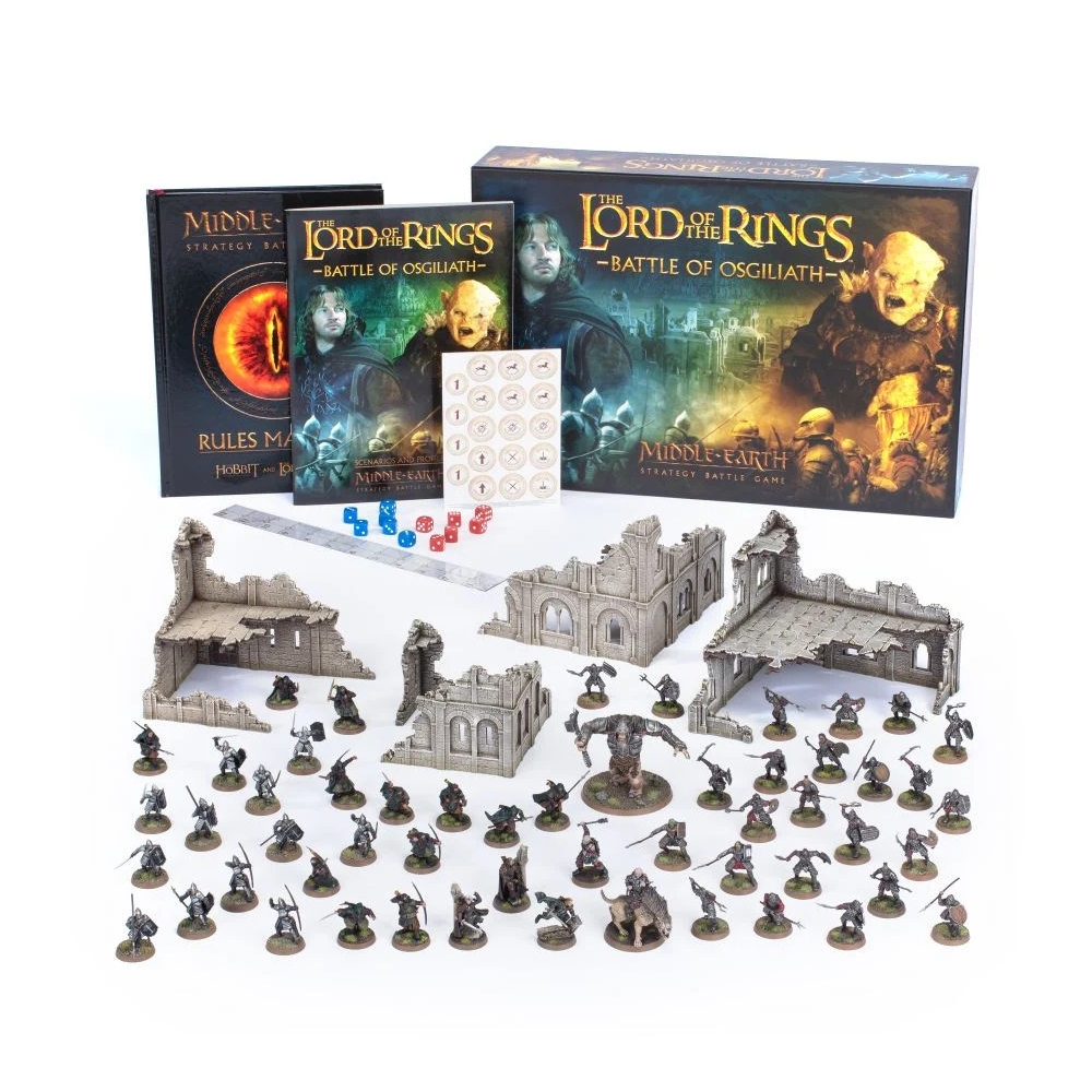 The Battle of Osgiliath is your gateway to collecting, painting, and gaming in Middle-earth. Step into this epic battle and take command of the forces of Gondor as they fight desperately to defend their homeland, or the legions of Mordor, who seek to destroy the free peoples once and for all. This box contains 54 models split into two balanced armies – one Good, one Evil – and all the rules you need to play games of Middle-earth Strategy Battle Game, plus accessories and dice. It’s a complete game in a box!