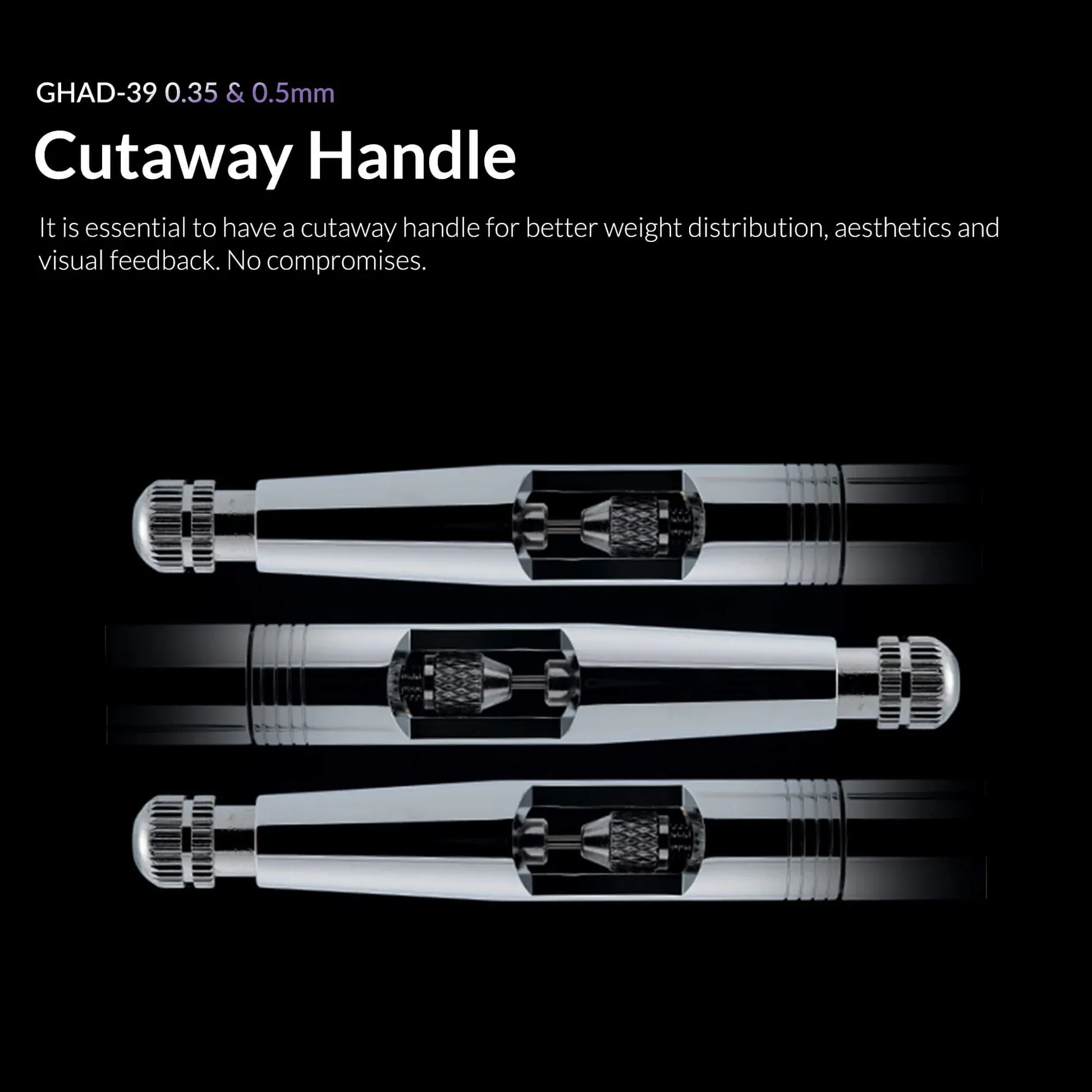 Cutaway Handle Design: Our thoughtfully designed cutaway handle enhances weight distribution, aesthetics, and visual feedback, ensuring a comfortable grip with no compromises.