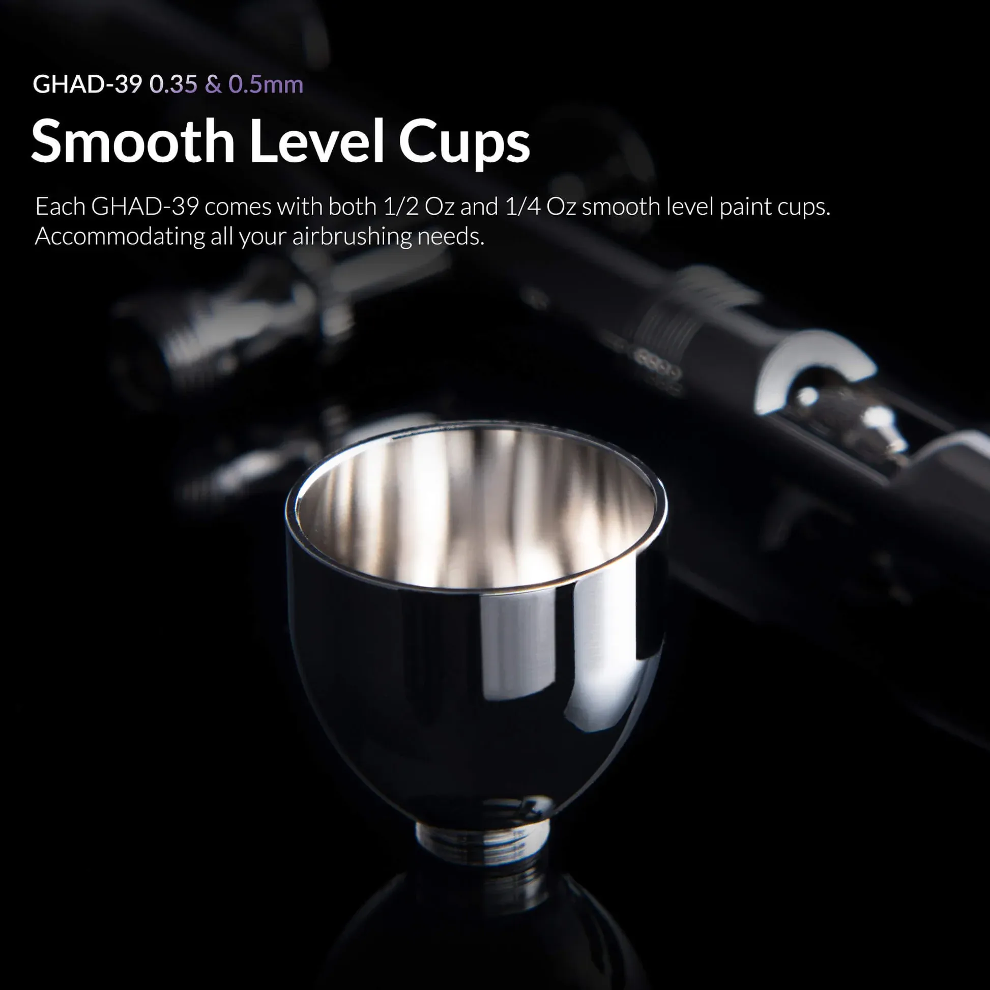 Changeable Cups: Each GHAD-39 comes equipped with both 1/2oz and 1/4oz smooth level paint cups, accommodating all your airbrushing needs for various projects.