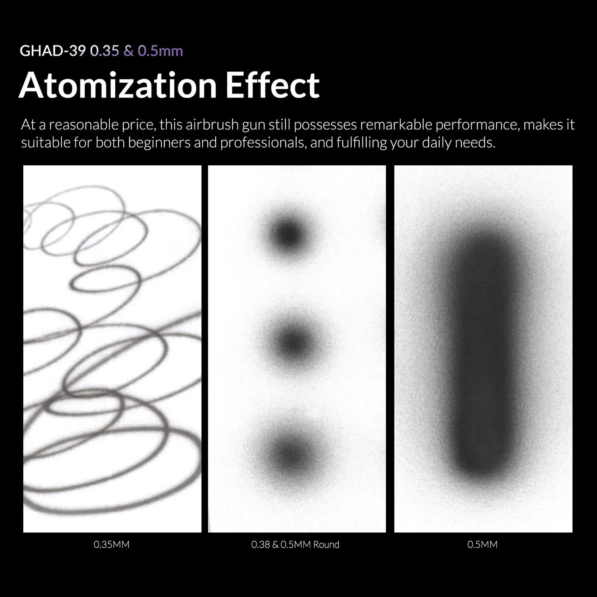 Versatile Usage: Whether you’re engaged in fine arts using the 0.35mm needle or tackling broad surfaces with the 0.5mm option, the GHAD-39 adapts to your needs with ease.