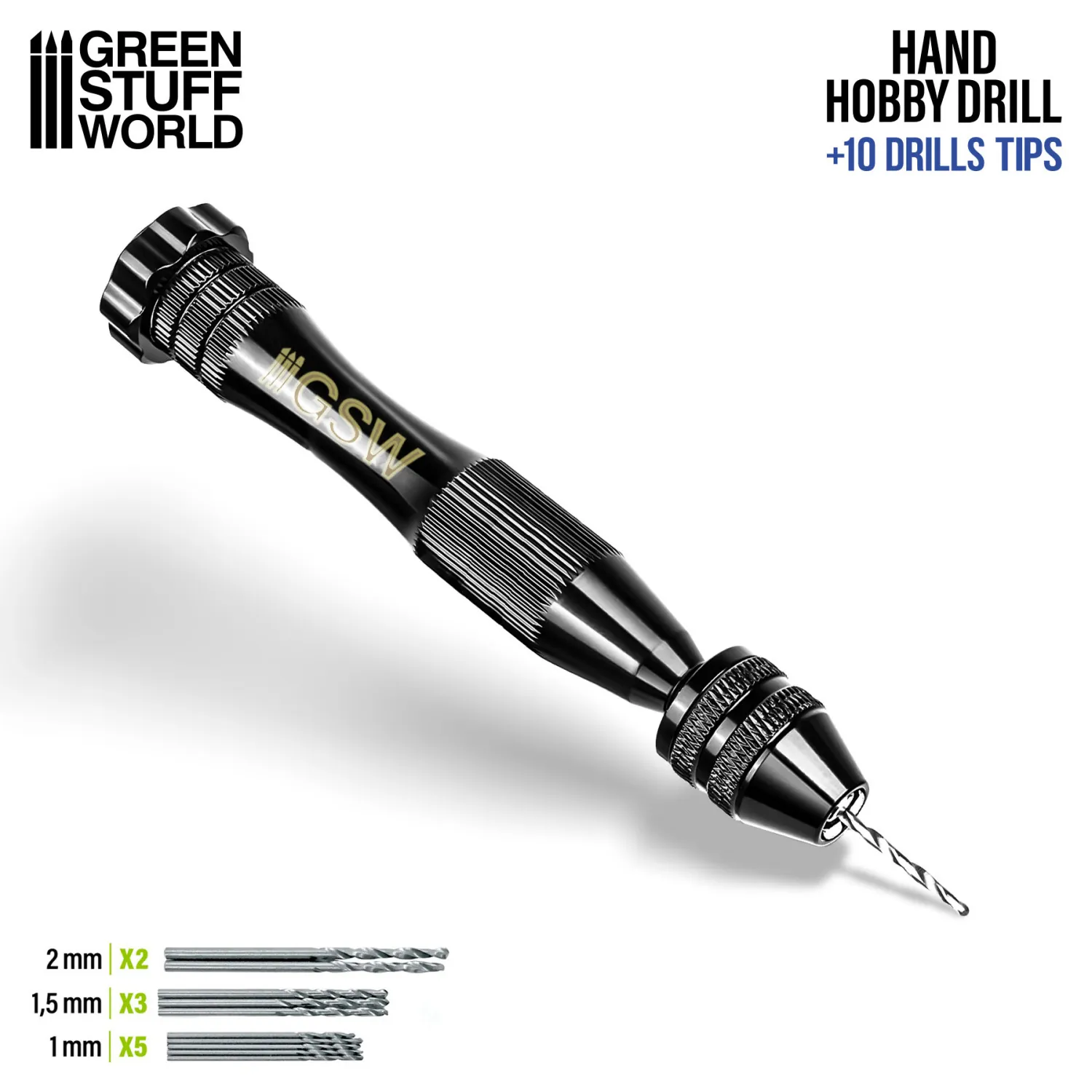 This type of hand drill or Pin Vise is especially useful for hobbyists and enthusiasts who work with models, miniatures, and other small projects. The compact size and precise control make it an ideal tool for creating tiny perforations and holes in a variety of materials, including plastic, resin, wood, and metal.