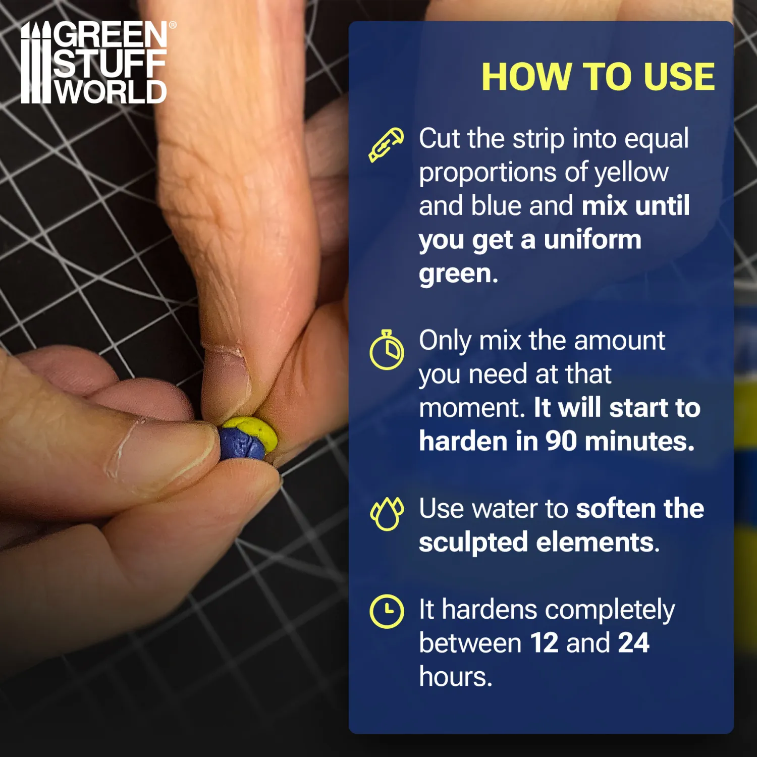 Kneadatite Blue/Yellow Green Stuff is a room-temperature curing two-part epoxy putty sold either in tape format.