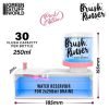The brush cleaner includes a 250 ml bottle that allows you to flush 30 times. The water reservoir under the rinser has a capacity for 2 bottles of 250ml before cleaning and emptying the dirty water.