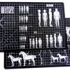 On one side of the Mat are printe the guide lines of the most common scales, which will allow you to create armatures for sculpting miniatures of both men and women. On the other side you will finde the same scales and guide lines to create horses and warhorses armatures