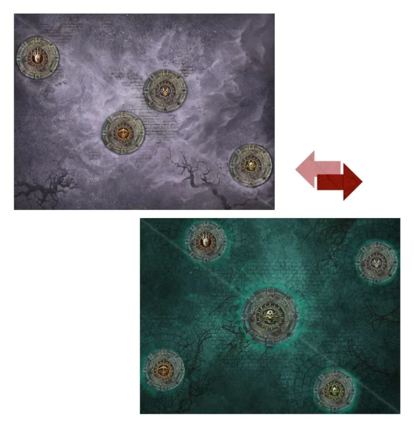 – 6x Plastic pieces of terrain: This terrain depicts the morbid architecture found in the Realm of Death. Two pieces grant special abilities to nearby units.