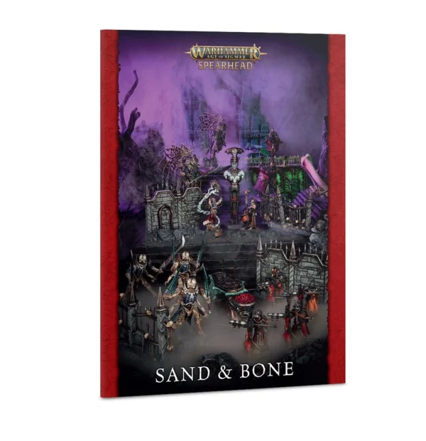 – 1x 24-page Spearhead: Sand and Bone book: Includes rules to get you started with games of Spearhead, from choosing your army, to the Battleplan: Sand and Bone, plus rules for the Cities of Sigmar: Fusil-Platoon, Seraphon: Sunblooded Prowlers, Ossiarch Bonereapers: Mortisan Elite, and Ogor Mawtribes: Scrapglutt Spearheads, and more.
