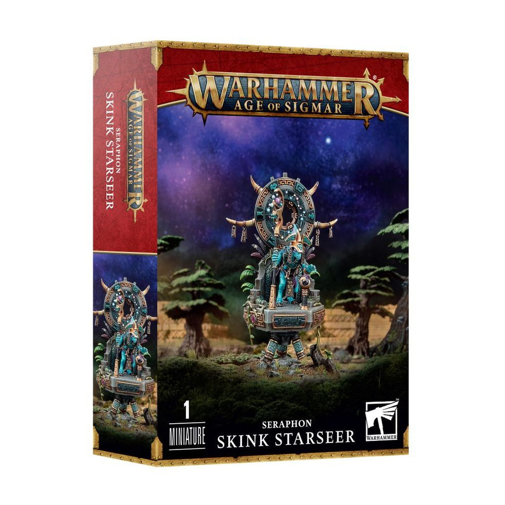 Skink Starseers sit at the apex of the skink priesthood, festooned with astromantic tools that aid them in deciphering the portents of the heavens. Starseers are the most puissant Seraphon wizards after the Slann Starmasters themselves, with celestial blessings that allow them to gaze into the future and influence the skein of fate to suit their masters’ unknowable ends.