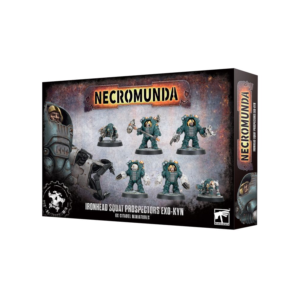 This multipart plastic kit builds four Exo-kyn, which can also be used as Exo Masters, and two Techmite Exovator 078b miniatures for use in Ironhead Squat Prospector gangs in games of Necromunda. The doughty Exo-kyn can be armed with a selection of weapons, including two-handed hammers, storm-welders, hydraulic drills, rock saws, or Ironhead power fists. A choice of heads with open-face helmets or mask inserts is also included. The Techmite Exovator 078b are clad in the same layered ferramite armour coating as the exo-suits of their handlers and can also be armed with a variety of weaponry.