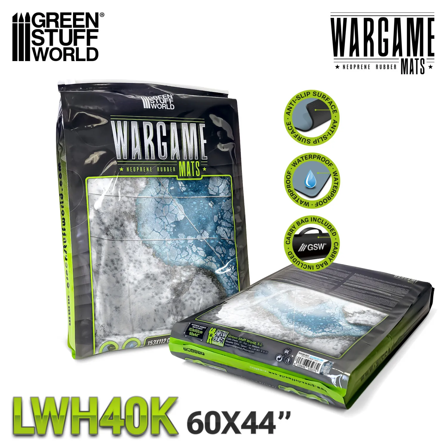 Green Stuff World’s 44×60″ neoprene battle mats with deployment lines are engineered to be fully compatible with the battlefield size and deployment layouts most often used in Warhammer 40,000® 10th edition matched-play events. The pre-lined guides mirror the standard Dawn-of-War, Sweeping-Engagement, and other popular setups found in the Grand Tournament Mission Packs, so you can position terrain and deploy armies quickly while staying within the official parameters, yet without measuring tape spaghetti all over the table. All markings are subtle and woven into the artwork, ensuring they aid play without breaking immersion.