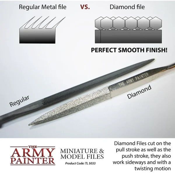 These 3x diamond files are extremely versatile tools for the wargamer & hobbyist. A must-have for custom conversions and cleaning mold lines, as well as preparing pieces for gluing. Works on plastic, resin and metal surfaces.